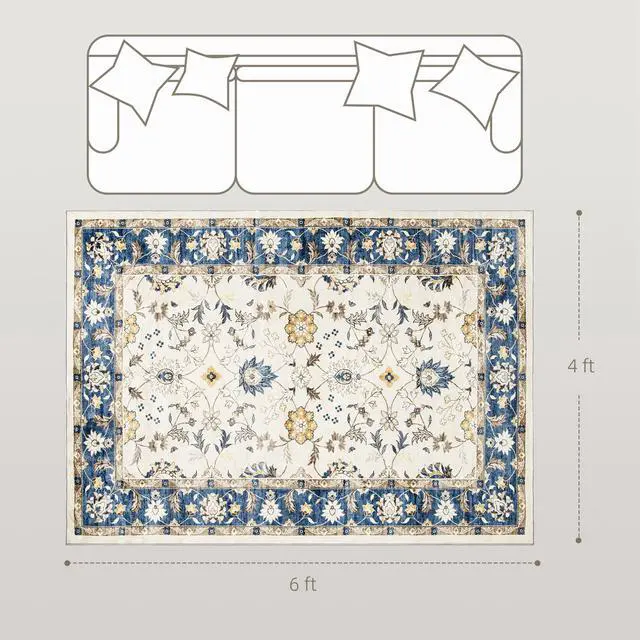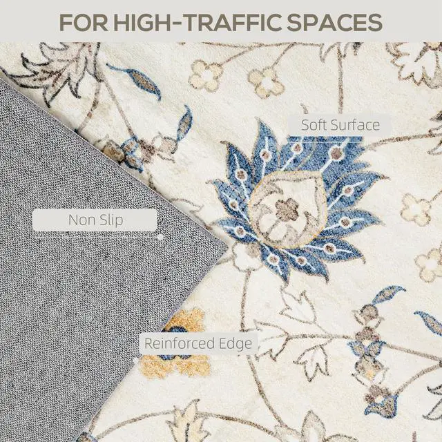 Step into style and comfort with the Aosom area rug, featuring bohemian-inspired floral and vine patterns that enhance any space, from living rooms to studies. Crafted from soft, plush flannel, this bedroom rug offers easy cleaning options. Plus, a 100% TPR anti-slip backing ensures your setup is chic and safe. Suitable for any room needing a touch of elegance!