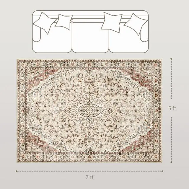 Step into style and comfort with the Aosom area rug, featuring a classical symmetrical floral pattern that effortlessly enhances any space, from living rooms to studies. Crafted from soft, plush flannel, this bedroom rug offers easy cleaning options. Plus, a 100% TPR anti-slip backing ensures your setup is chic and safe. Suitable for any room needing a touch of elegance!
