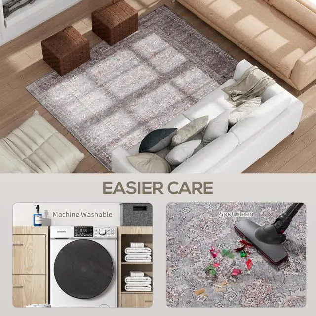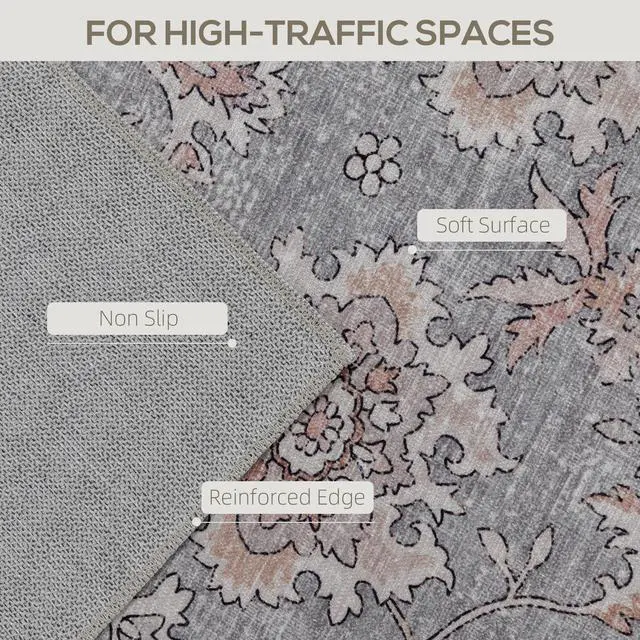 Step into comfort and style with the Aosom washable rug. A distressed floral and vine pattern with subtle tonal contrast brings a calm, traditional feel to any room. Made from soft chenille, this bedroom rug feels gentle underfoot and is easy to care for. Machine washable and equipped with a non-slip TPR backing, it stays secure while keeping maintenance simple.