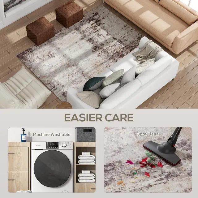 Step into comfort and style with the Aosom washable rug. Its abstract design with gentle tonal flow adds a calm, contemporary touch to any room. Made from soft chenille, this bedroom rug feels gentle underfoot and is easy to care for. The machine is washable and equipped with a non-slip TPR backing, so it stays secure while keeping maintenance simple.