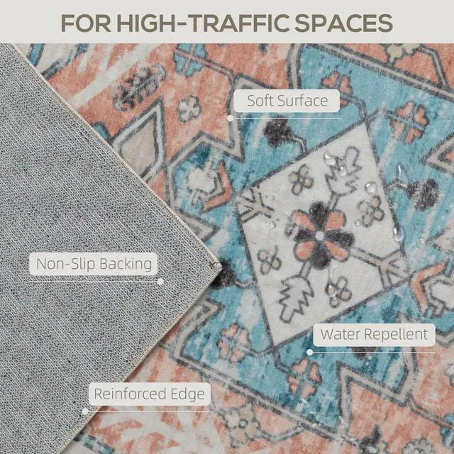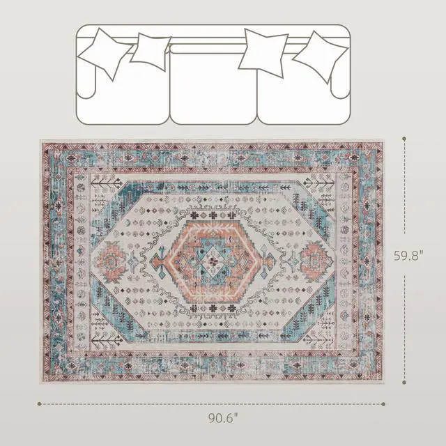Step into style with the Aosom 5x7 rug for living room! The heat transfer print offers both beauty and comfort underfoot, making it suitable for high-traffic spaces like your dining room or hallway. This bedroom rug's stunning design adds a splash of warmth to your decor, and its easy-clean material makes it a must-have for pet owners. Don't miss out on this chic, vintage-style rug from Aosom!