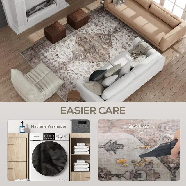 Step onto luxury with the Aosom flannel faux fur heat transfer carpet. This 5x7 vintage-style rug, featuring intricate patterns and beautifully stitched edges, is a treat for your feet and a charming addition to any high-traffic space like your living room, bedroom, or hallway. It's a breeze to keep clean and is machine-washable, making it excellent for pet owners.