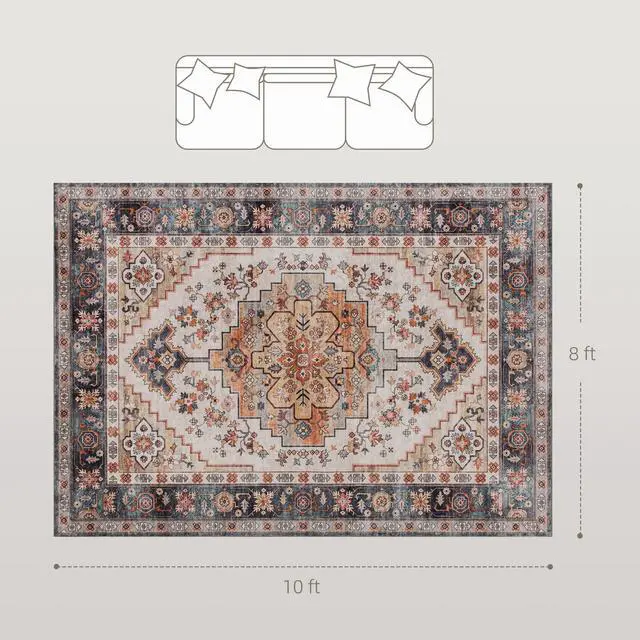 Step into a world of comfort and style with the Aosom boho rug. Made from soft berber fleece, its low-pile design feels cozy underfoot, while the non-slip TPR backing keeps this rug for bedroom in place on the floor. The carpet features a bold floral design at its center with gently flowing vines and blossoms that add to its relaxed, boho vibe. Plus, it's machine washable, making it easy to clean. Add elegance to your living space with the Aosom bedroom rug!
