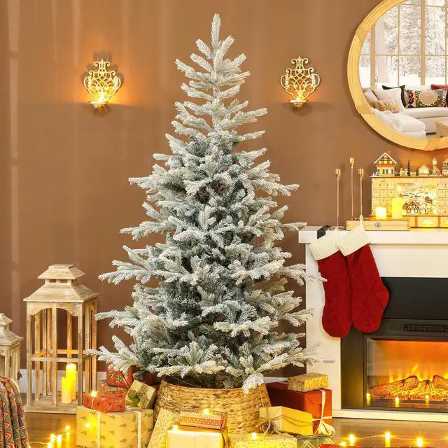 - - Full wide spruce shape with flocked branches offers a full, vibrant festive display
