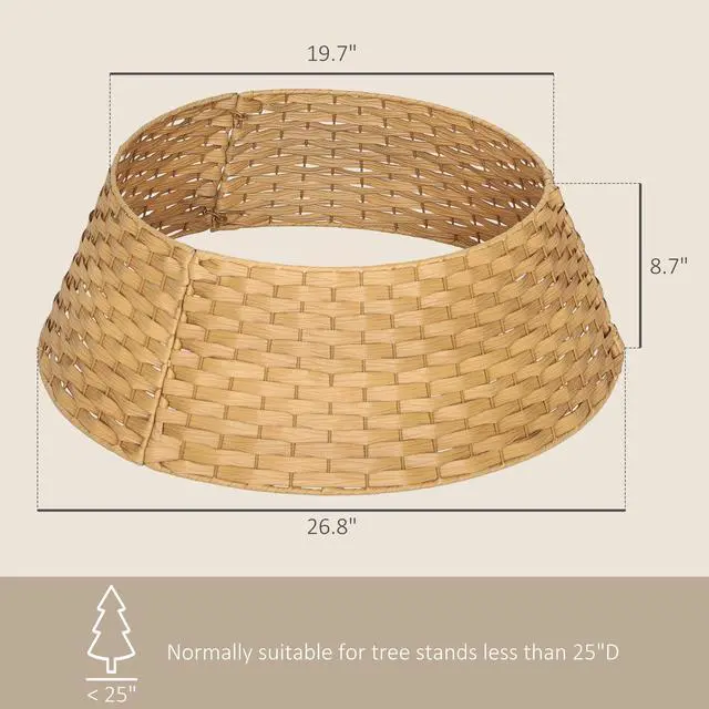 Add a touch of rustic elegance to your festive decor with the Aosom Christmas tree collar. Hand-woven in natural color, this charming accessory seamlessly blends tradition with style. Crafted from plastic and reinforced with metal wires, it provides a stable, attractive base while protecting the tree stand and keeping curious pets and little ones at bay. Suitable for trees up to 26.8" in diameter and 4â7 ft tall.
