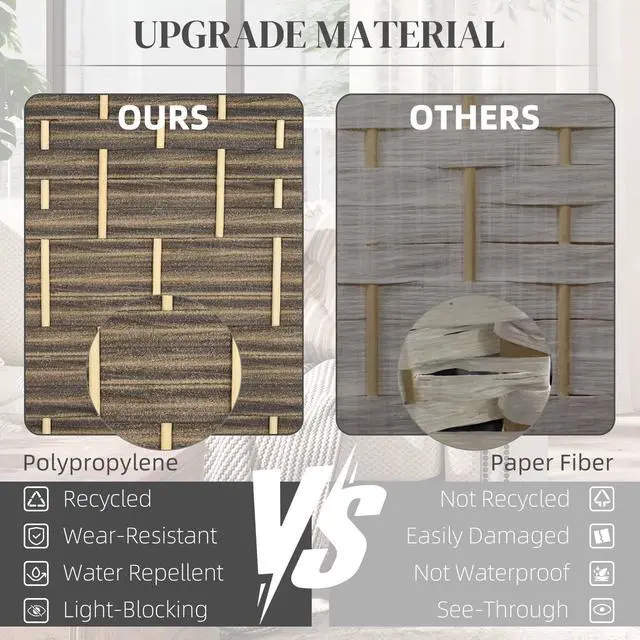 Transform your space with ease using the room divider screen from Aosom. Its polypropylene makeup ensures superior privacy and unmatched strength compared to traditional paper fiber. This portable wall marries functionality with fashion via a stylish three-panel folding design accented by six metal hinges. An elegant arched pine wood frame and polypropylene weave make the Aosom folding screen a chic partition for privacy.