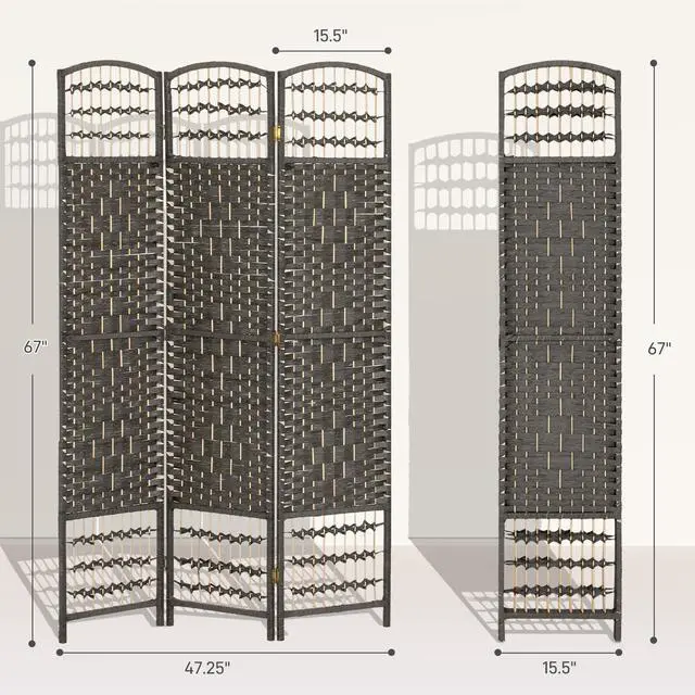 Are you looking for some private space? This Aosom folding screen is an excellent solution without sacrificing style and aesthetics. It can separate your work area from your family TV area, create a modest amount of privacy between beds in your children's shared bedroom, and can help minimize nearby light or background noise distractions. The stylish handwoven design adds a chic touch to your room. Make your house a home with Aosom.