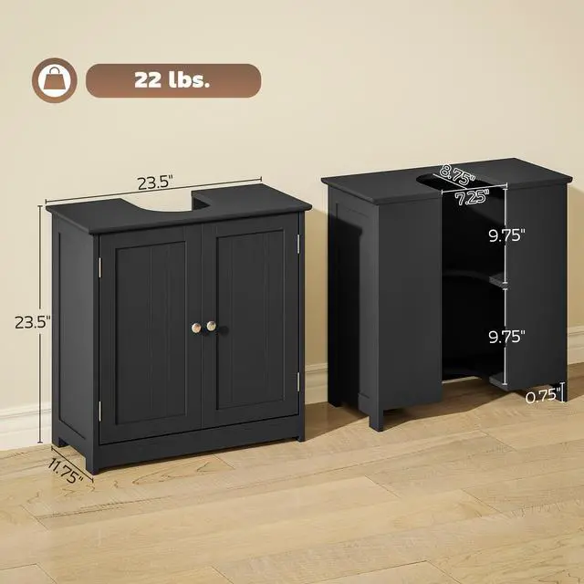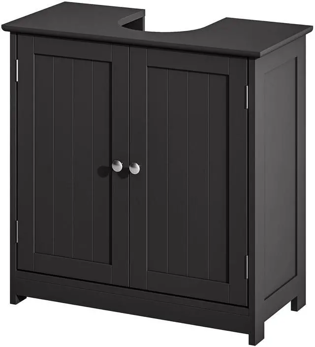 Maximizing space in your bathroom has never been easier, thanks to this under-sink cabinet from Aosom. With an elegant style, the black color gives this bathroom storage cabinet an easy-to-blend, versatile feel to match any bathroom style. It is made from MDF board for strength, and its "U" shaped cut-out allows it to fit around a sink and pipes easily. The adjustable shelf inside adapts to your changing storage needs. Save space while maximizing your storage.