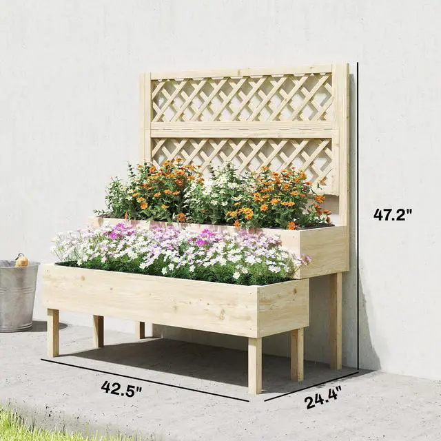 Does your love for gardening clash with the strain of bending and a lack of space? It's disheartening when physical discomfort and a cluttered yard diminish your passion. This Aosom planter box with trellis offers a practical solution. Its stepped design allows you to tend to plants comfortably while the integrated trellis gives your climbing vines a beautiful backdrop, transforming your garden into an effortlessly organized and enchanting retreat