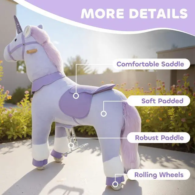Bring hours of fun and excitement to your child's playtime with the Qaba unicorn rocking ride. Powered by your child's own motion, this playful ride-on encourages active play, helping to build strength, improve balance, and boost coordination. Featuring a soft, comfortable seat for added safety, it offers a secure and enjoyable ride. No batteries or charging are needed, making every playtime an engaging and enriching experience.