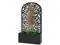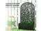 - - Curved privacy panel with leaves cut-outs serves as a trellis