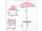 Transform your garden into a whimsical playground with a Qaba patio table and chairs with umbrella, featuring a cute unicorn and rainbow design. This four-piece set includes two kids' patio chairs and a toddler picnic table with a central hole for the adjustable umbrella, offering shade on sunny days. Suitable for children aged 2-5, the entire set easily folds away for convenient storage.