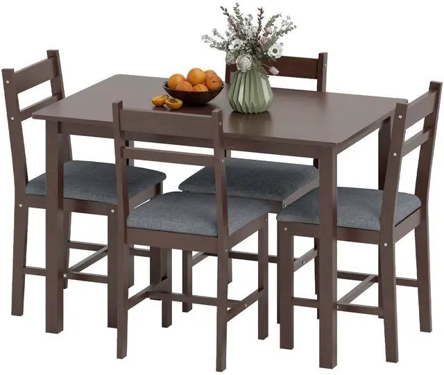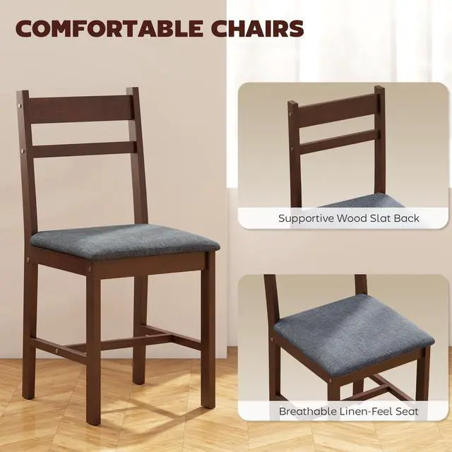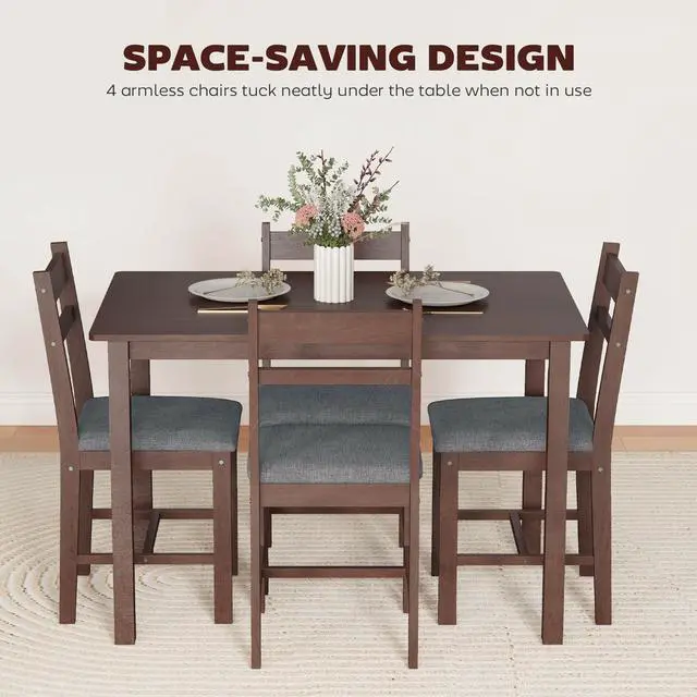Bring warmth and charm to your dining area with this Aosom inviting farmhouse-style 5-piece dining table set. The wooden table and soft cushioned chairs create a cozy, welcoming spot for meals and conversations. Crafted from solid rubberwood, it's stable and built to last. Plush padded chairs with slat backs and breathable linen-feel seats make every dinnerâand long, lingering chatsâtruly comfortable. A stylish, practical centerpiece your home will love!