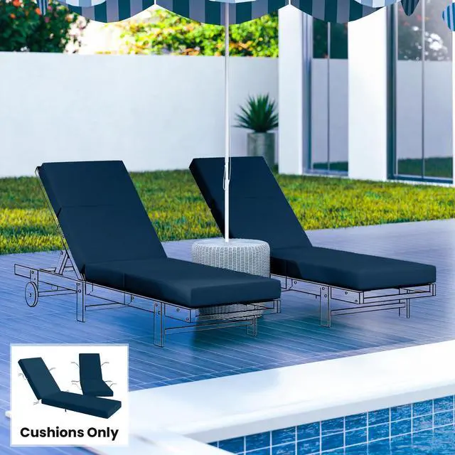 • Aosom Set of 2 Chaise Lounge Cushion, 4" Thick Outdoor Lounge Chair Cushions with Ties for Patio, 21" x 72â¯", Navy Blue