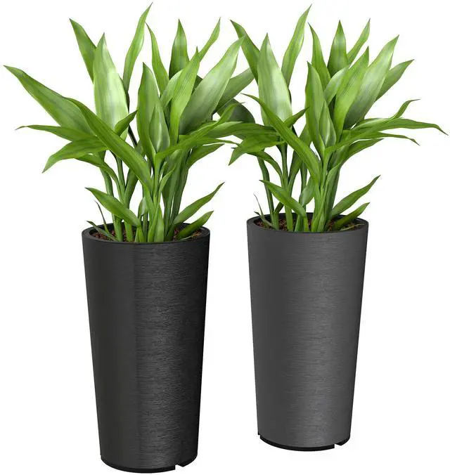 Transform your garden or indoor space with this set of two 29-inch tall flower pots. Featuring a flexible 2-piece layout, style them together or apart for a chic display. Crafted from thick 6 mm PP, these planters resist cracking and fading, ensuring reliable performance in any weather. With a tapered interior and 19 L capacity, they encourage healthy root growth while keeping your plants thriving and happy!
