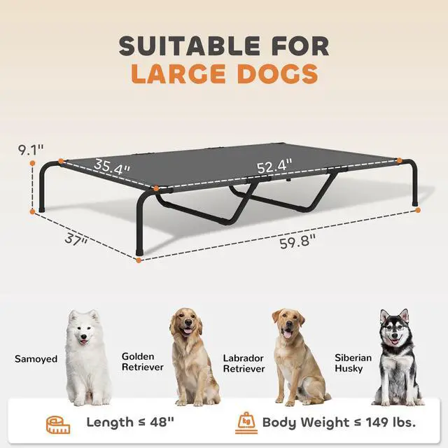 - - The 9.1" off-ground design keeps pets cool and away from pests