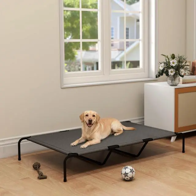 Give your large dog the gift of restorative sleep with the Aosom outdoor dog bed, giving them a restful, comfortable spot above cold, hard floors. Raised 9.1" from the ground, it provides relief for their joints on a supportive mesh surface. This versatile elevated dog bed works wonderfully indoors or on the patio, giving them a dedicated space to relax anywhere.
