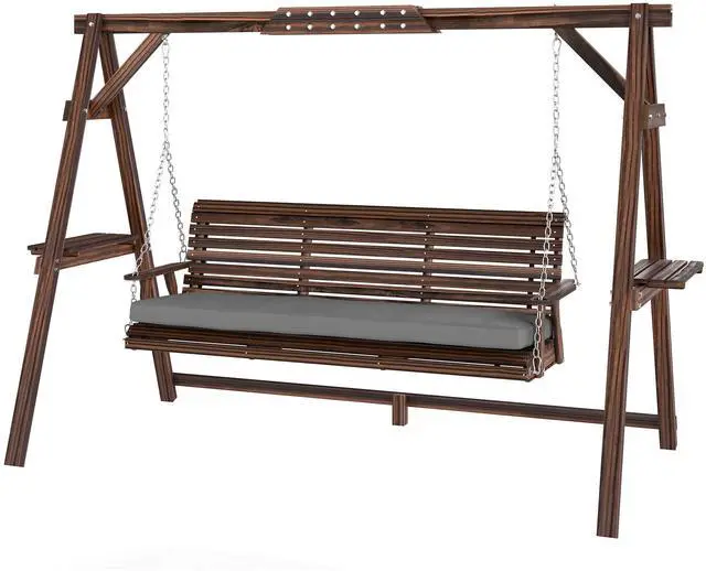 Relax and unwind outdoors with the Aosom wooden swing chair. Ergonomically designed for up to 3 people, it features a gently angled backrest, wide seat, and supportive armrests for cozy comfort, while the thick, padded cushion adds extra luxury. Great for outdoor lounging, it includes handy built-in side shelves for drinks or essentials, and the removable cushion cover makes cleaning a breeze.