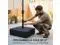 - - A sleek black cover conceals the two sandbags and base for a tidy look