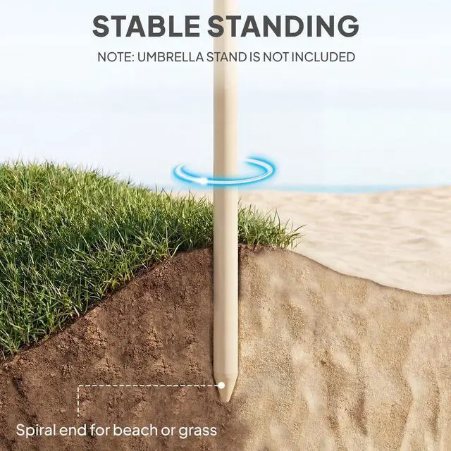 Feel the disappointment as a sudden gust sends your flimsy umbrella tumbling, ruining your enjoyable beach day. That promised relaxation turns into a frustrating struggle against the sun and wind. The Aosom beach umbrella anchors your peace of mind with its reliable spiral base and eight-rib frame. Its expansive 72.8" Dia. faux-straw canopy casts a cool, tropical shadow, creating a stable haven for your entire family to enjoy their seaside escape
