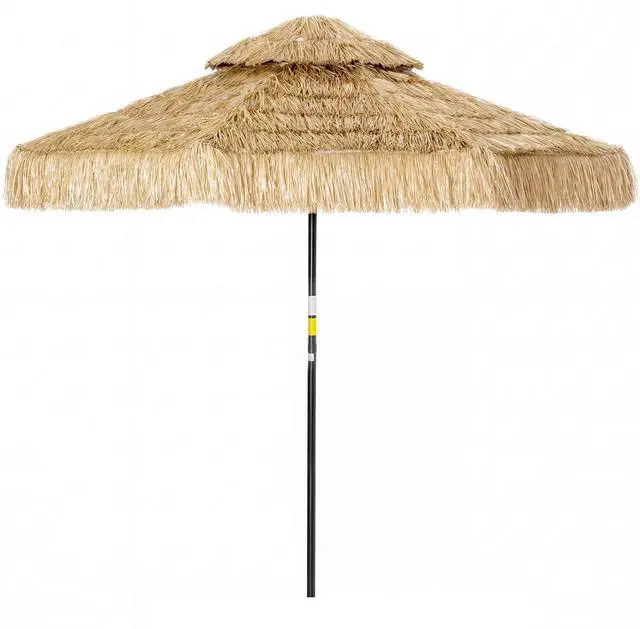 Longing for a getaway but stuck at home? An ordinary yard can feel dull, and flimsy umbrellas are a constant worry in the wind. The patio umbrella with charming straw tassels instantly creates a vacation vibe. Its generous 8.5 ft canopy with a two tier design and eight-rib frame offers a stable, shady retreat. Relax under this Aosom patio umbrella and turn your backyard into a personal, worry-free oasis for peace of mind.