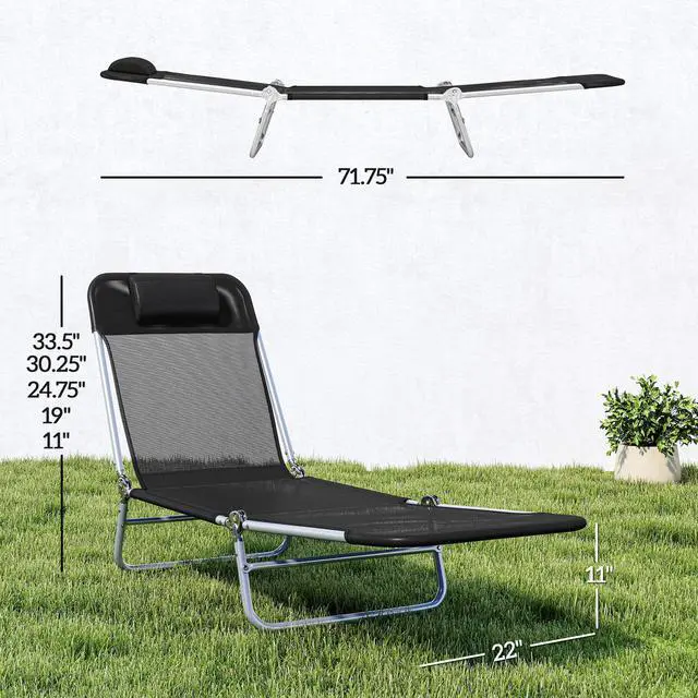 Wish you could pack up the comfort of the resort and bring it with you on the road? You're a step closer. Aosom has a folding lounge chair, so you can lay back in the sun at the beach, while camping, or at the pool. It features a reclining backrest with five positions and a pillow to take it to the next level. Pick your favorite tanning angle and get the most out of your summer snooze. Made with water in mind, the mesh surface dries off fast, even if you just got out of the pool.