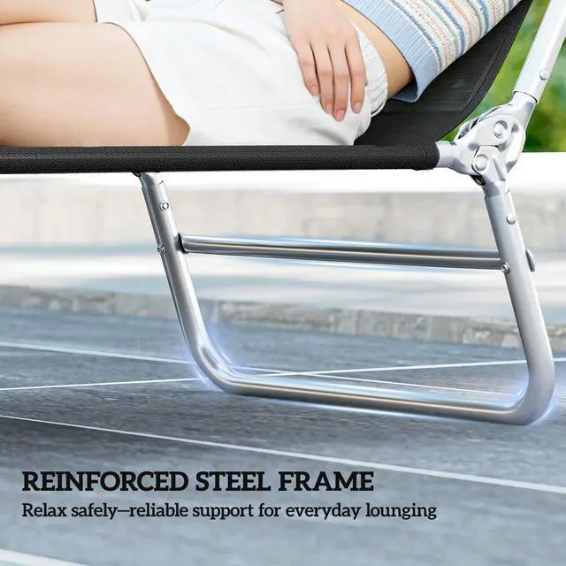 - - Back reclines to 5 different positions to find your favorite tanning angle