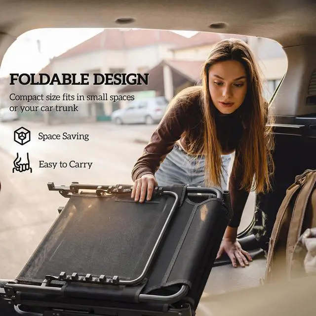 - - Foldable outdoor lounger for easy storage in corners or your car