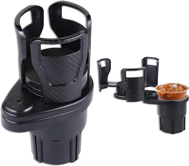 2-in-1 Car Cup Holder: The stand is equipped with 2 large-capacity storage cups, can rotate 360° Adjustable, saving space in the car, and can hold two drinks at the same time