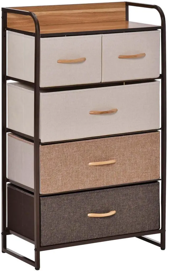 Large Capacity Storage: Keep your accessories organized with this storage dresser. Includes 2 small and 3 large drawers for blankets, scarves, and socks. The wood top provides a hard surface for displaying lamps, clocks, books and glasses.