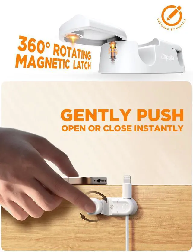 Secure & Swift Magnetic LockingEffortlessly manage desktop chaos with our magnetic cord organizer. The innovative magnetic lid snaps shut, locking cords safely within the cord holder. Even accidental tugs won't dislodge cables, preventing falls and tangles. Features a 360°rotating latch, allowing access in tight spaces like behind nightstands (perfect nightstand organizer) or desks. Open or close instantly, single-handed, with just a gentle push true 1-second convenience for fast-paced home or office settings.