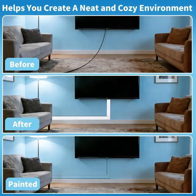 We cut the cable cover raceway into 6 sections cord hiders in advance, which can be easily spliced according to your wall cord cable management scenarios. Our cord covers for wires on wall with a simplistic appearance to blend in seamlessly with your home decor. You can paint the tv cord hider the same color as your walls and easily cut the cable hider wire hider to any desired length. Decorate your living room with the BeltandRoad cord hider wall mounted tv