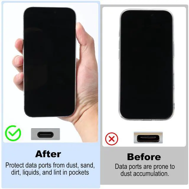 Hanging Design: Our USB-C cover cap features a hanging hole that allows USB-C dust cover to be attached to a lanyard or keychain, ensuring the charging port plugs are always within easy reach. This design prevents loss and allows you to easily carry your USB-C cover wherever you go.