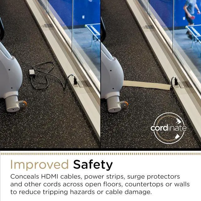 Safety Run HDMI cables, power strips, surge protectors and other cords across open floors, countertops or walls without the hazard of tripping or damaging cables