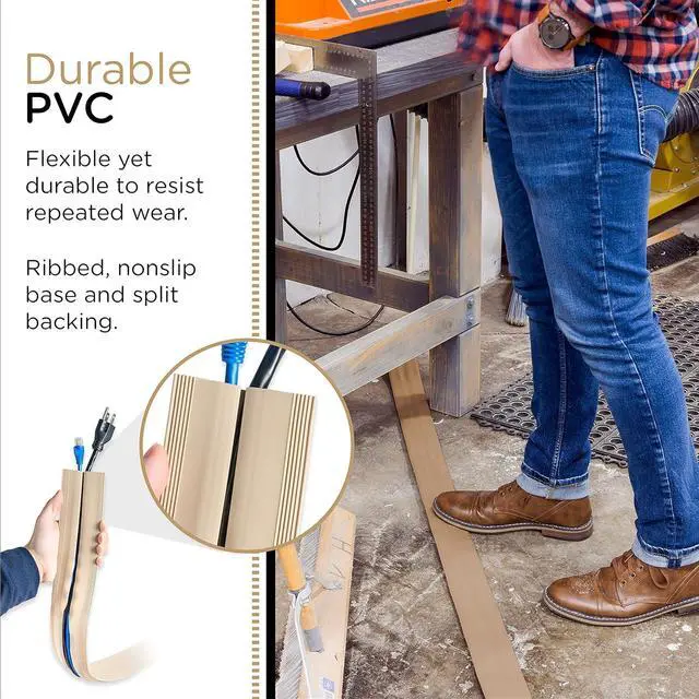 Low Profile Rounded surface provides a seamless solution for concealing cables, extension cords and wires without snags and allows wheels to easily roll over cover while the tan finish discreetly blends in with décor