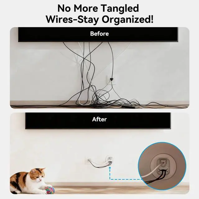 Tired of tangled cables? Our in-wall cable management kit instantly transforms cluttered entertainment areas into sleek, professional spaces! Safely hide all cords behind walls to prevent tripping hazards for kids and pets. Perfect for wall-mounted TVs, it creates a tidy setup so you can relax without visual chaos. Ideal for family homes with playful dogs or curious toddlers!