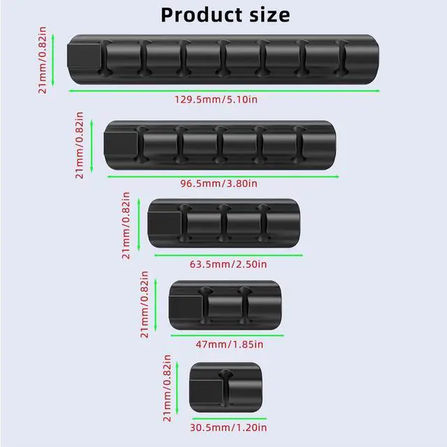 Product Contents: Our cable management system includes six magnetic swivel clips and five silicone clips, neatly stored in a compact box.