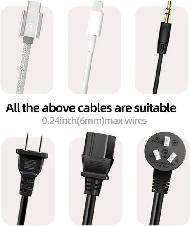 Strong Adhesive: The magnetic swivel cable organizer is made of PA material, while the silicone cable manager is made of silicone material with an upgraded adhesive. They securely hold cables, cords, and wires in place, leaving no residue or damage when removed. Suitable for clean surfaces such as tables, walls, cabinets, wood, ceramic, and metal.