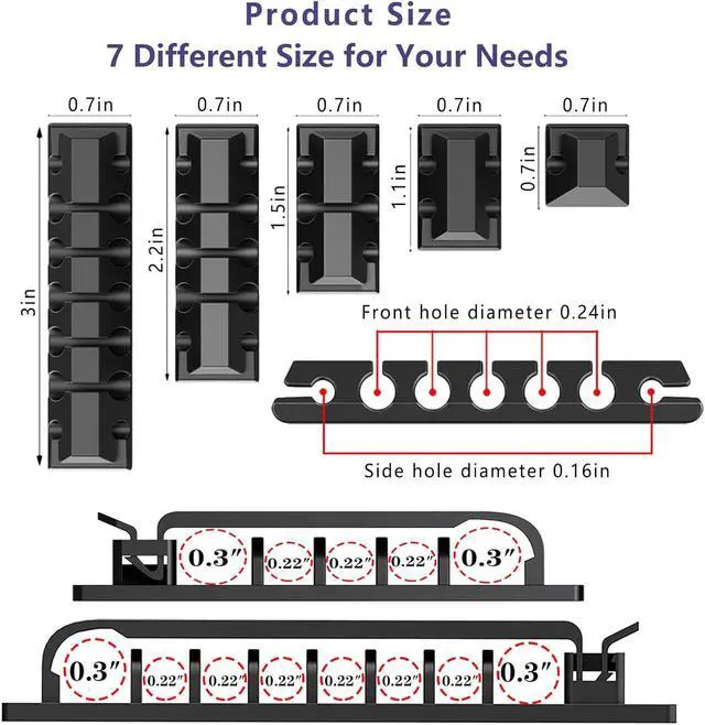 7 kinds of Cable Clips: Toally 65pcs wire clips, extra strong. Works on all clean surfaces like desks, walls, baseboards, cabinets, wood, ceramics, etc. Expand space visually by hiding the cables under the table and next to the back