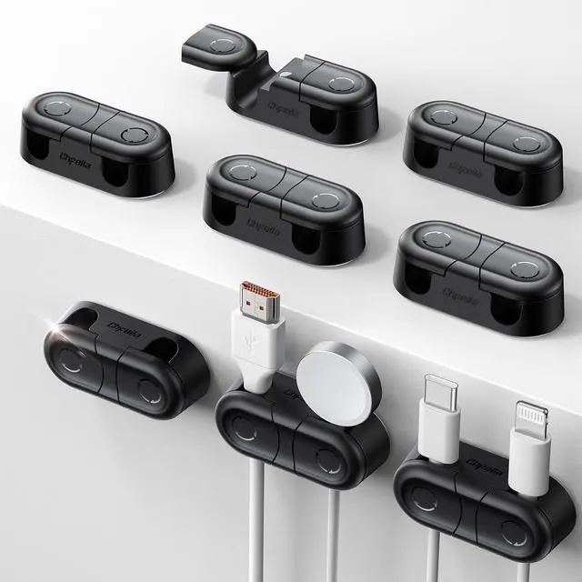 Ultra-Strong, Residue-Free AdhesionExperience unparalleled holding power for reliable cord organizers for cords. Our proprietary adhesive boasts a massive 1.8 " x 0.83 " contact area and advanced pressure-preservation technology ensuring a bond that lasts. Securely attaches to virtually any smooth surface - glass, metal, wood, painted walls, ceramic tile, car dashboards. Removes easily without damage or sticky marks when needed. Kit includes 3 spare adhesive pads for longevity. [Note: Outdoor conditions not recommended. ]