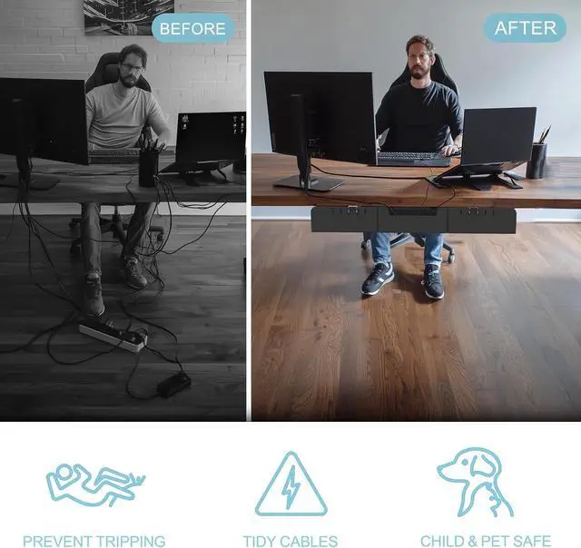 KEEP YOUR DESK CLUTTER-FREE & ORGANIZED Create a cleaner, safer workspace with this under desk cable management tray. Easily hide messy wires, cords, and strips perfect for home offices, gaming setups, and workstations
