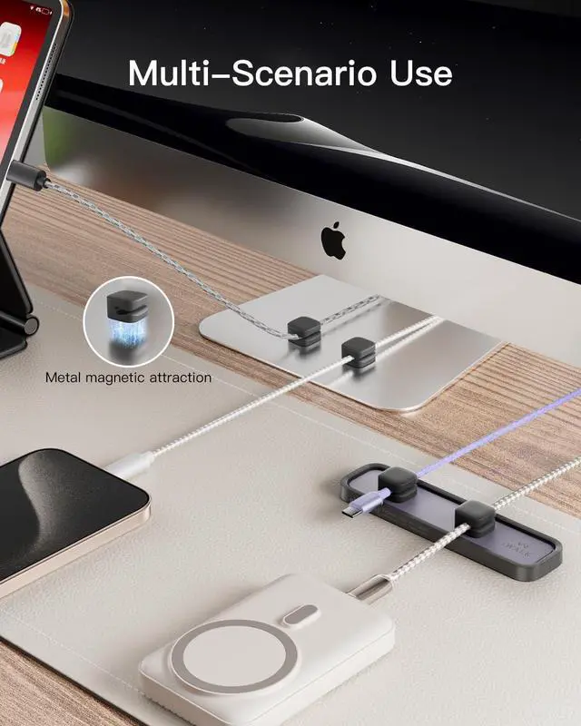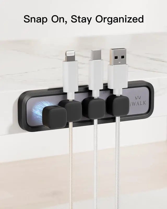 Secure Magnetic Snap-On Base: Magnetic clips snap easily into place and firmly hold 26 mm cables. One-handed access makes it simple to manage cords without tangling or fumbling.
