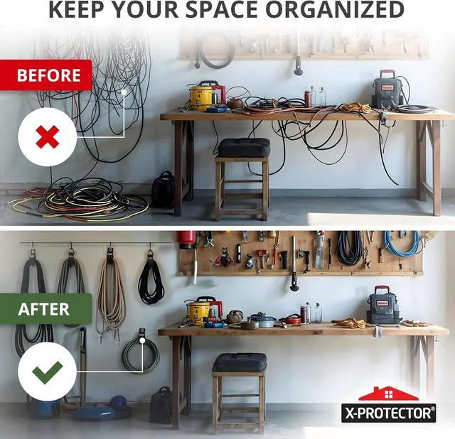 Heavy-Duty - X-Protector Peg Board Organizer Accessories are the ultimate solution for taming cords, hoses, and cables! X-Protector Cord Management holds up to 100 lbs and keeps your space tidy!