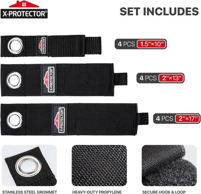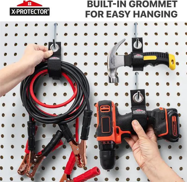 Durable & Reusable - X-Protector Cable Holder is built to last with tough weather-resistant nylon, rust-resistant grommets, and extra-strong stitching. Wrap, hang, and reuse straps again and again!