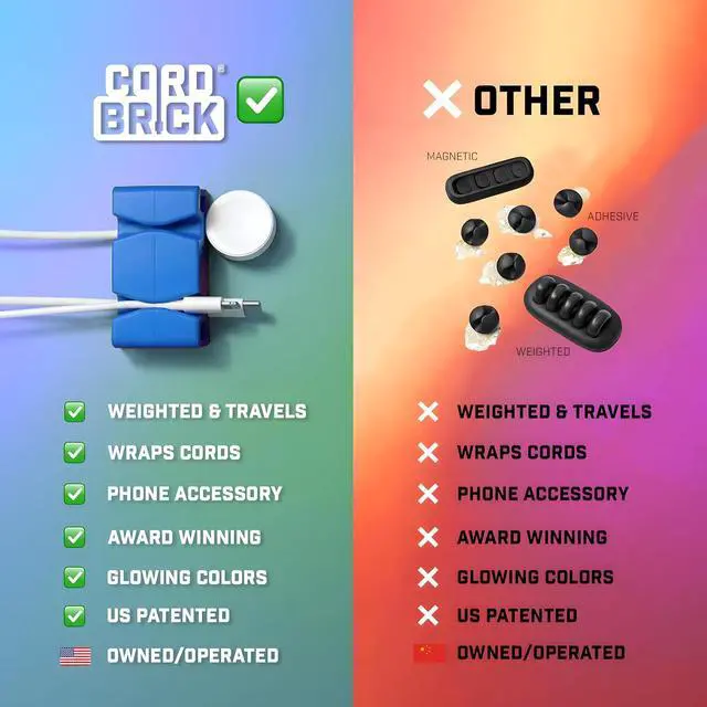 SIMPLE WRAP & UNWRAP: Snap, wrap, and trap cords with our cord organizer, then unwrap instantly for tangle-free use. Perfect as a usb cord organizer for daily desk organization or travel, CordBrick simplifies cable organizer clips needs with one versatile tool.