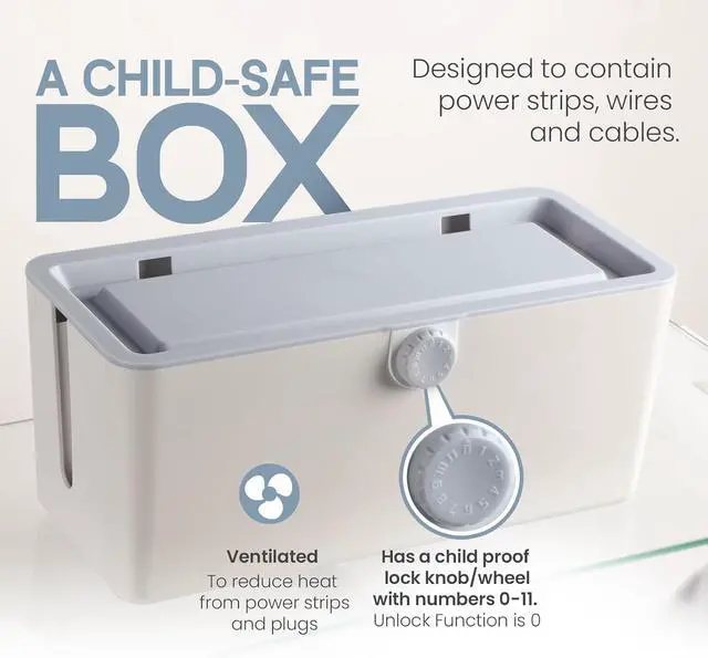 Safety: Keep your family safe with the child-safe design of this power strip box. With a child-proof lock knob/wheel featuring numbers 0-11, you can ensure that your little ones won' t be able to access any dangerous electrical components. UNLOCK FUNCTION IS 0