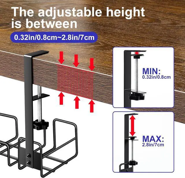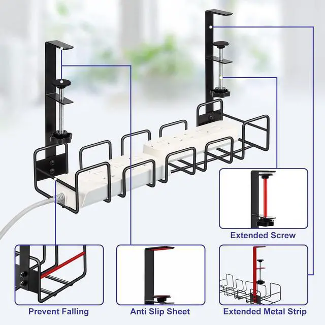 Quick Installation: Our under-desk cable management kit includes all the tools, screws, and accessories needed. According to the manual, you only need a few minutes to install it quickly.