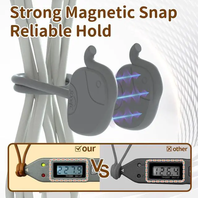 Strong Magnetic Hold with Encased Magnets: These reusable silicone cable ties feature powerful magnets fully encased in durable silicone, ensuring a secure hold without slipping or detaching. Perfect for organizing power cords, charging cables, and more, they provide a reliable, long-lasting cable management solution
