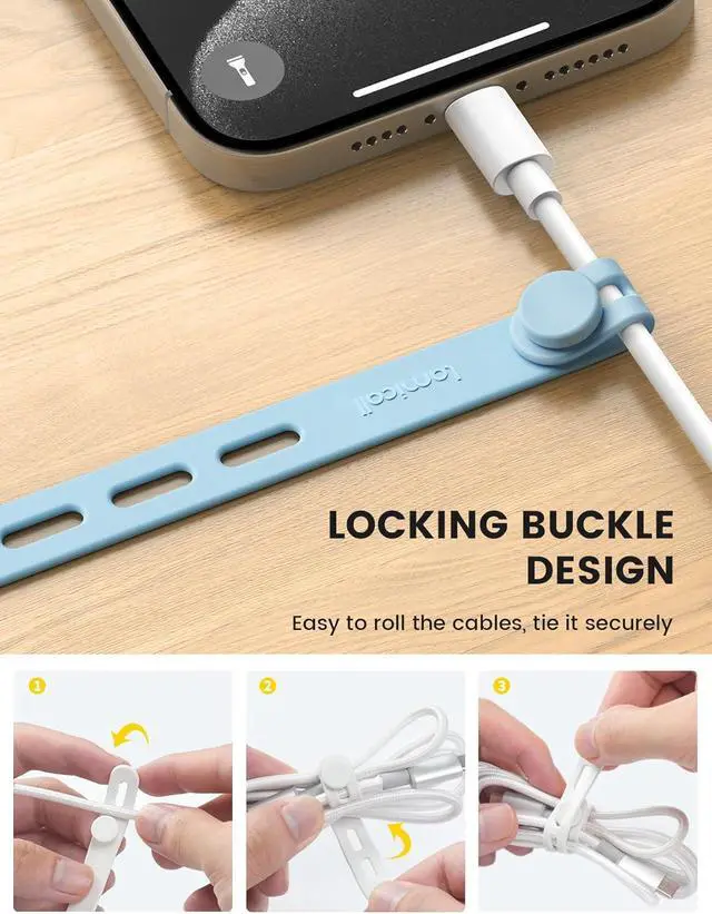 • Secure Locking Buckle : With a locking buckle(thickness:0.33") desgin, our silicone cable ties makes you easier to roll the strap to be bundled. The cord tie organizer is more secure while