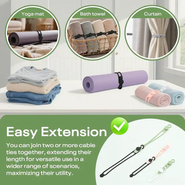 Reusable & Easy to Use: The button-style closure enables quick fastening and release, making these cable ties effortlessly reusable. Theyre washable and retain their shape over time. Unlike single-use zip ties or deteriorating rubber bands, these silicone cord ties are durable, washable, and maintain their form long-term.
